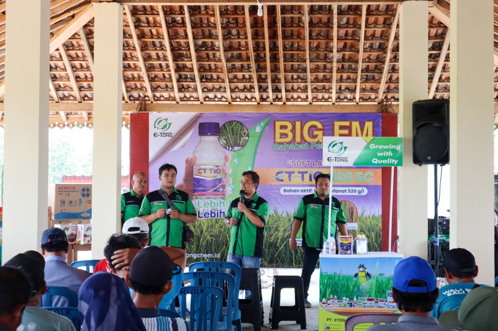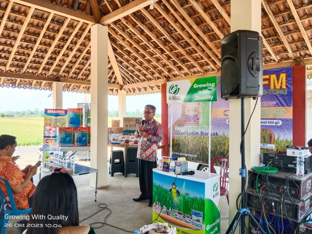 PT. Etong Chemical Indonesia yang diwakili oleh Pak Puja sebagai Sales Supervisor Area Jawa Tengah pada kesempatannya memaparkan Produk ET-TIO 520 SC sebagai solusi petani dalam memaksimalkan pertumbuhan padi khususnya untuk menghasilkan tanaman Padi menjadi Daun Lebih Hijau dan Anakan Lebih Banyak.