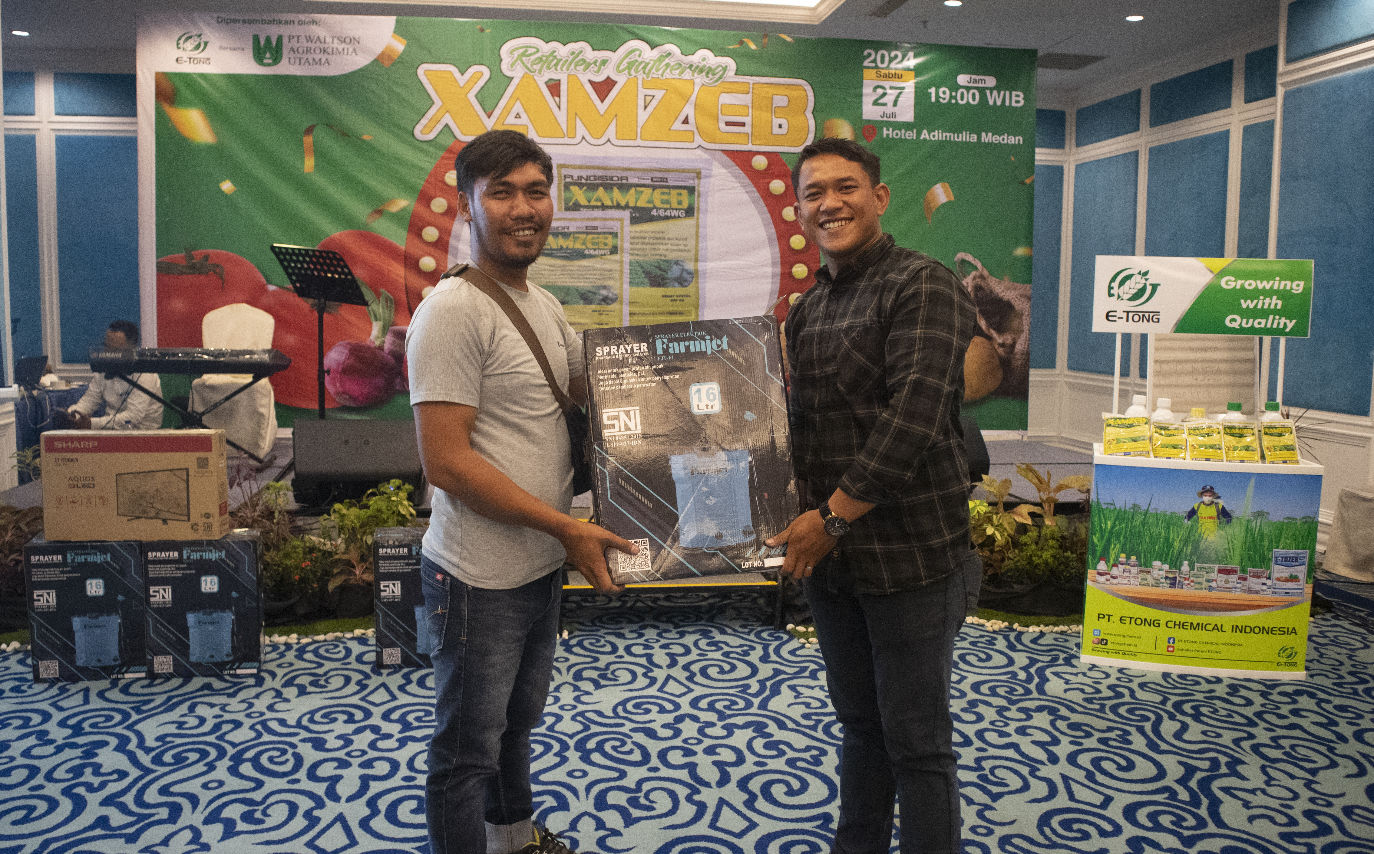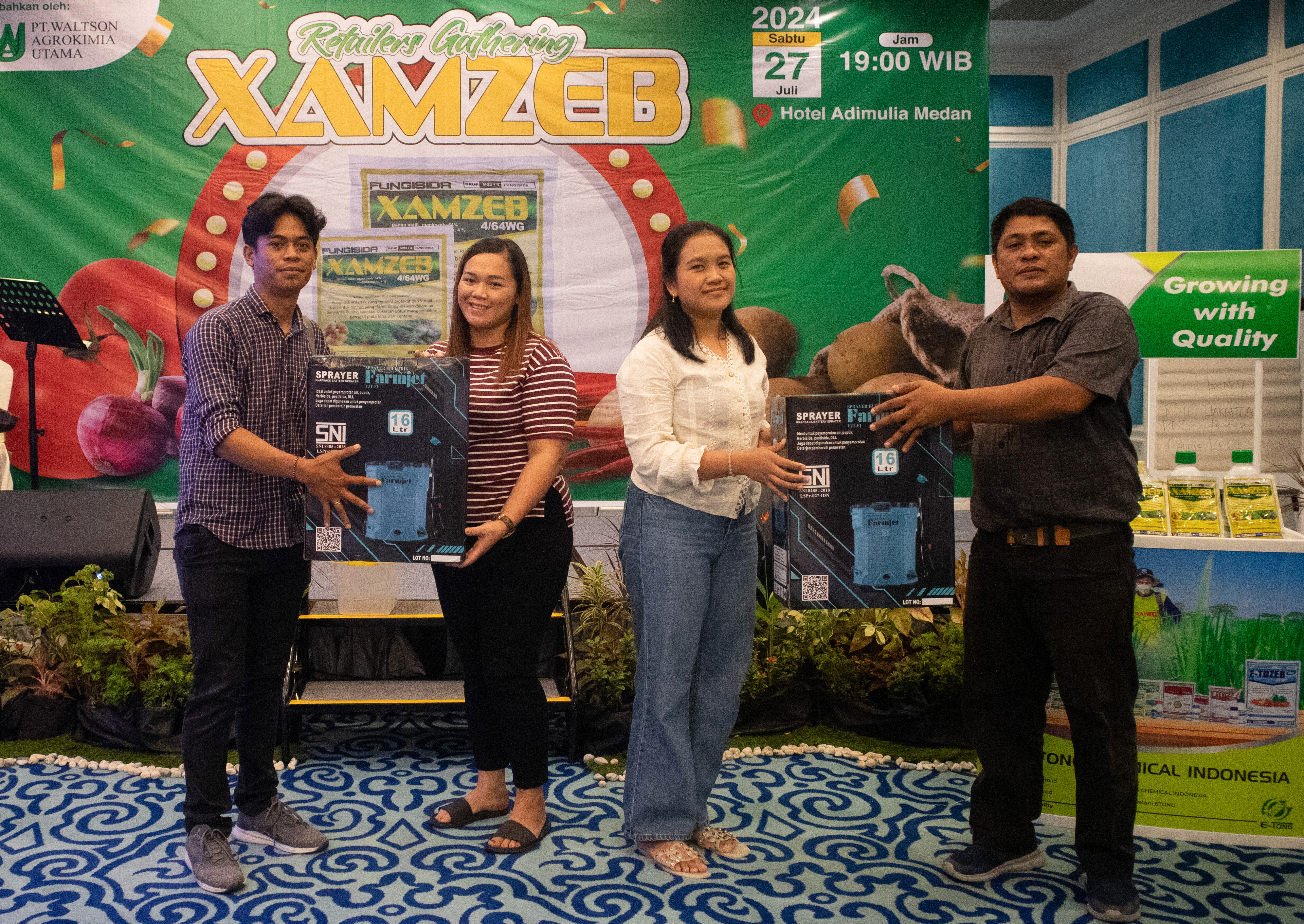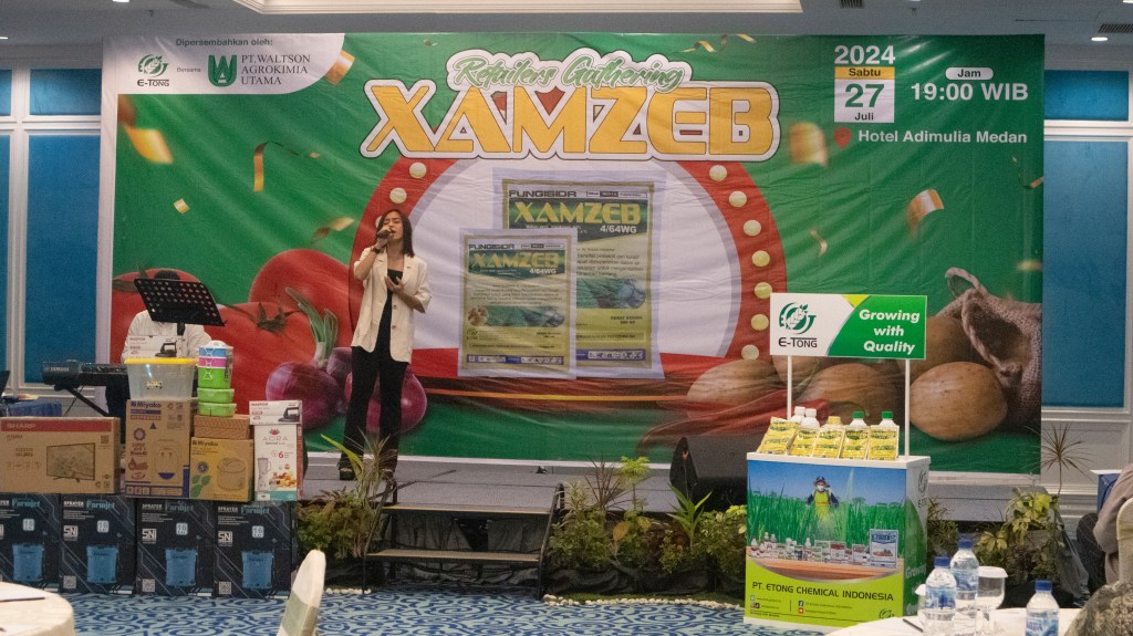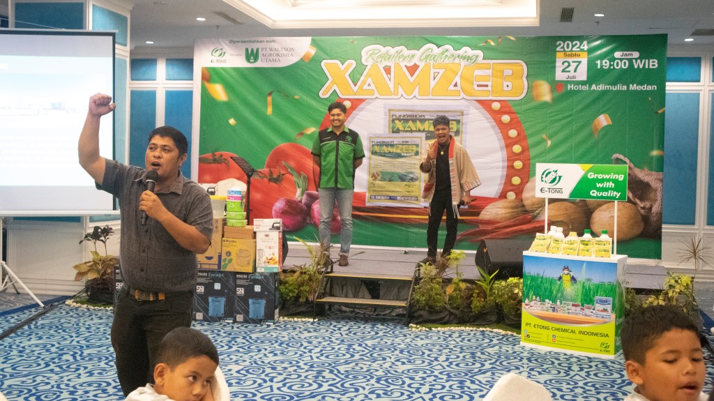 PT. ETONG dan PT. WALTSON AGROKIMIA UTAMA mengadakan acara “Retailers Gathering XAMZEB” di Hotel Adimulia Medan pada tanggal 27 Juli 2024 yang dihadiri oleh 29 Retailer. Acara ini dipandu oleh Pak Bambang Lesmono, Sales Supervisor E-Tong untuk wilayah Sumatera Utara. Dalam kegiatan ini, kami banyak berdiskusi tentang masalah yang sering dihadapi petani pada tanaman sayuran, terutama penyakit busuk batang, daun, dan umbi, yang sering terjadi pada tanaman kentang.