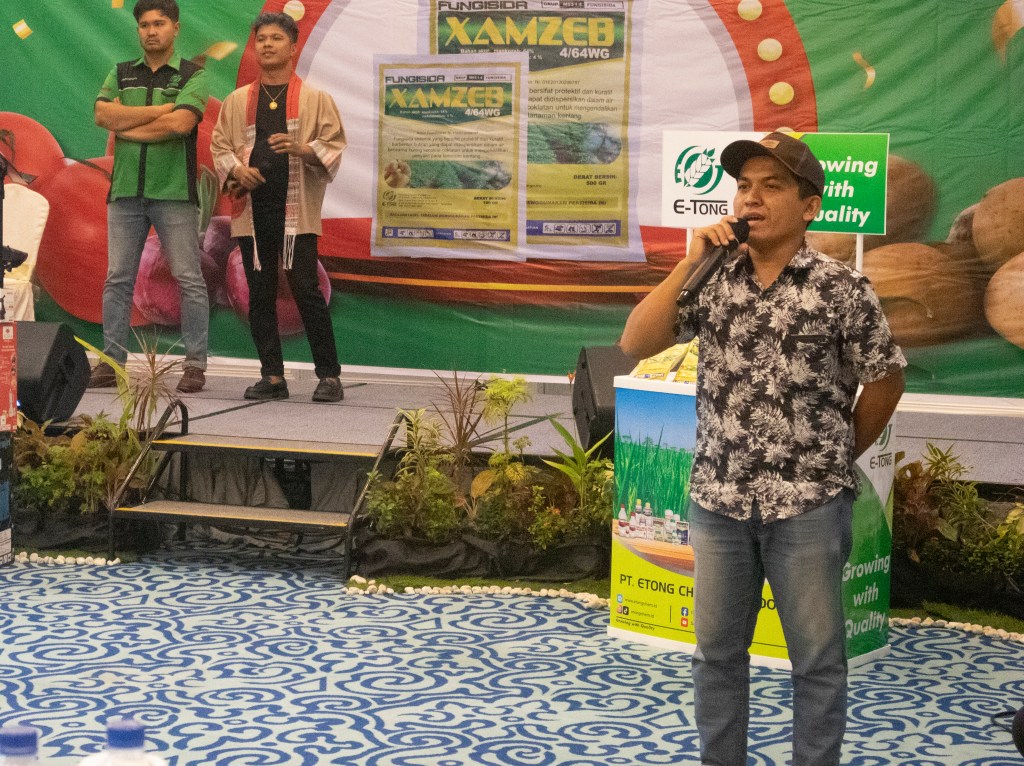 Dalam kesempatan ini, Adilicanta Sembiring, Agronomis E-Tong wilayah Dairi, Karo, dan Simalungun, menyampaikan harapannya agar acara ini dapat memberikan manfaat yang besar dan dapat menjadi kerjasama yang baik antara E-Tong dan Dealer XAMZEB 4/64 WG PT. WALTSON AGROKIMIA UTAMA, juga kios support.