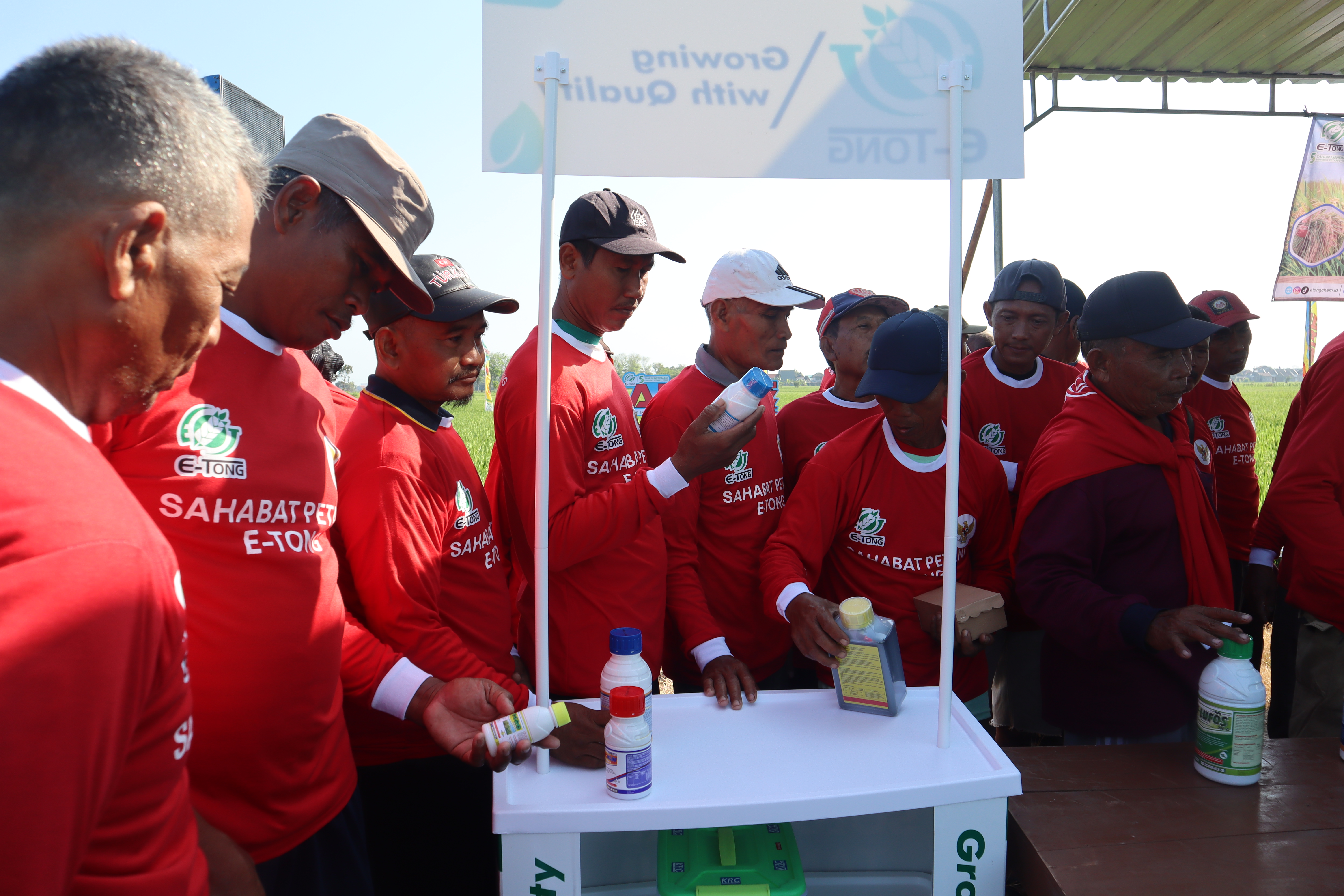 Yang menarik, para petani langsung diajak mengunjungi lahan demplot E-TOGRO untuk melihat sendiri bukti nyata hasil aplikasi produk ini di lapangan. Antusiasme petani pun terlihat tinggi saat menyaksikan pertumbuhan padi yang jauh lebih unggul dibandingkan lahan tanpa perlakuan E-TOGRO.