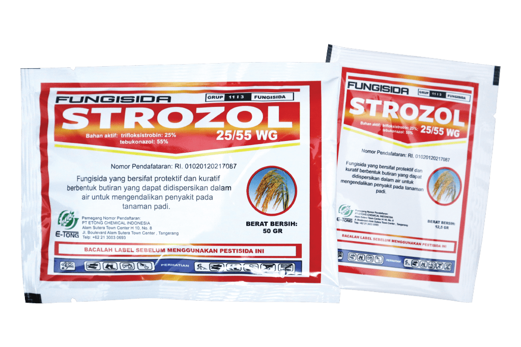 STROZOL 25/55 WG merupakan fungisida protektif dan kuratif yang sangat kuat dalam mengendalikan penyakit utama pada tanaman padi yaitu penyakit blas daun dan blas leher. Dengan dua bahan aktif unggulan STROZOL 25/55 WG dapat memberikan perlindungan optimal terhadap serangan penyakit di tanaman padi.