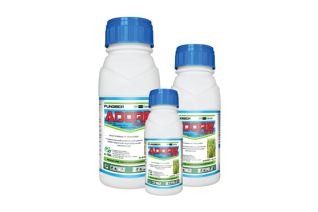 ADORE 150/50 SC merupakan fungisida yang bersifat protektif dan kuratif untuk mengendalikan penyakit pada tanaman padi. ADORE 150/50 SC mempunyai keunggulan dibandingkan produk fungisida sejenis dikarenakan memiliki dua bahan aktif unggulan terbaru. ADORE 150/50 SC digunakan untuk menghindari penyakit hawar pelepah dan sebagai stimulus padi yang menjadikan padi lebih berat, bening, bersih, dan berbobot.